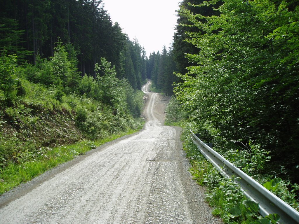 Asi v 1/3 cyklotrasy budete križovať asfaltku, ktorá vedie od nádrže až do obce Oravská Lesná (predpokladám, že to je stará cesta, ktorá spájala Kysuce a Oravu pred vybudovaním priehrady). Pokračujte však rovno.
